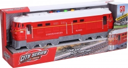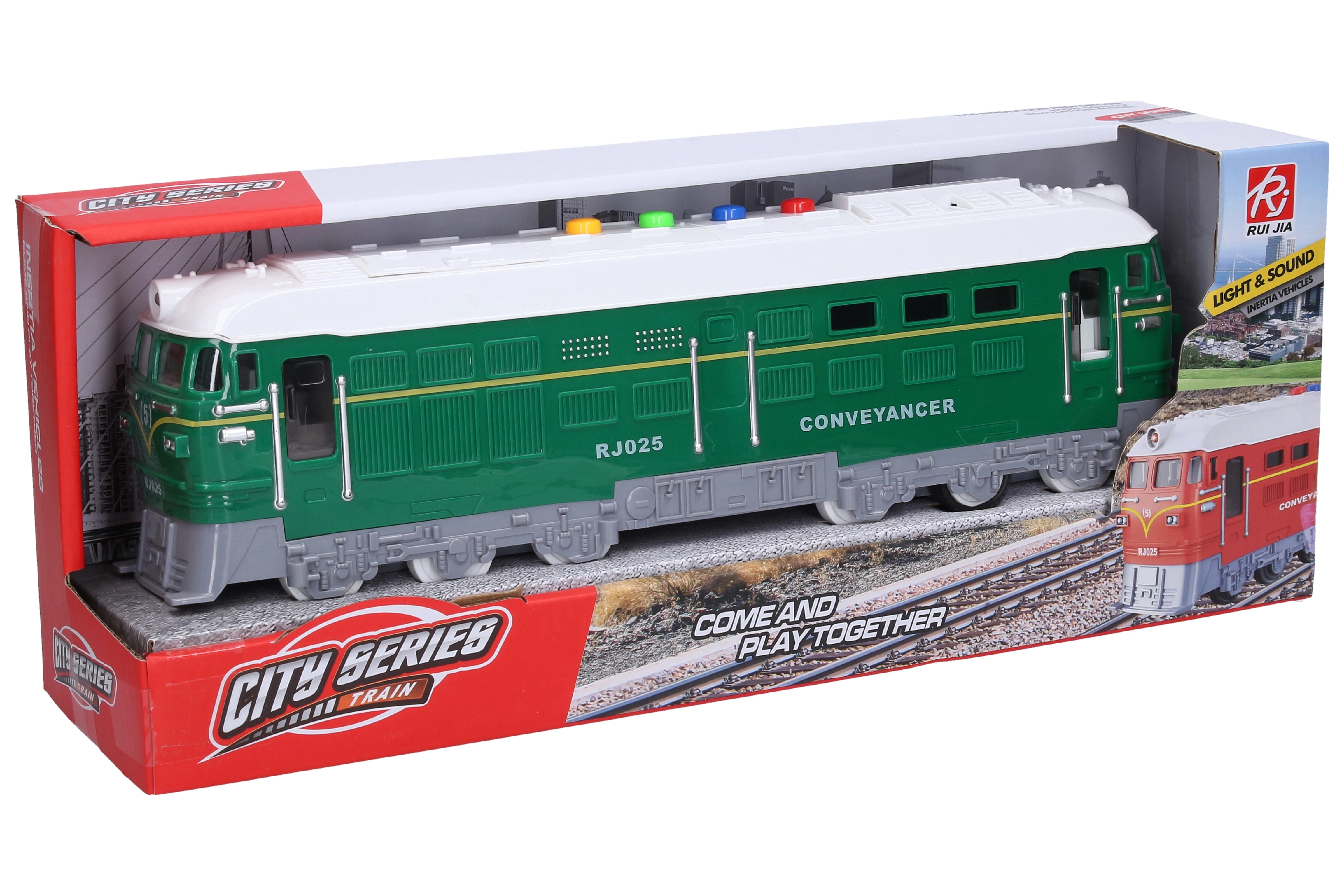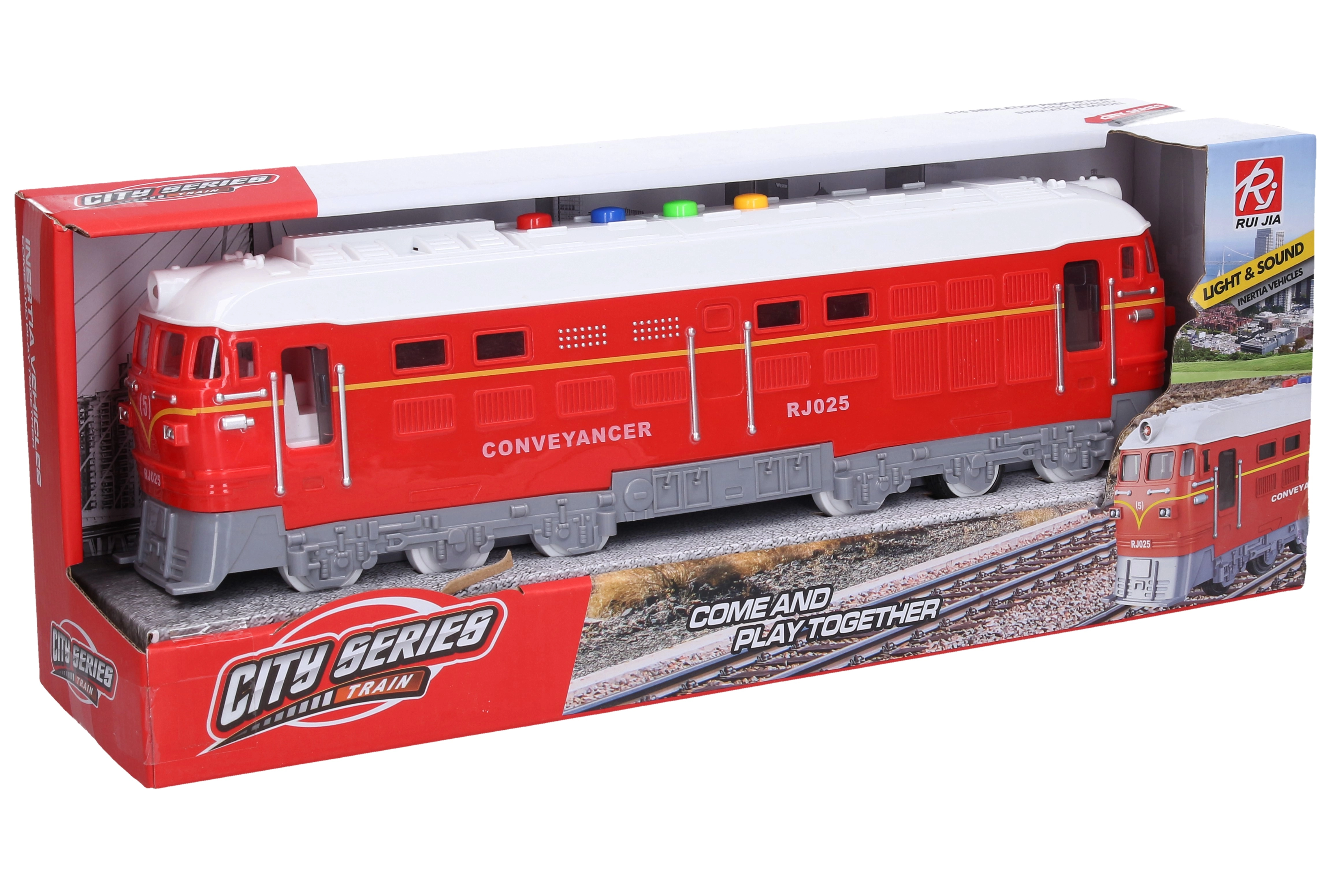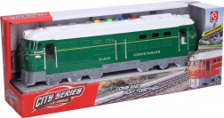 Szórakoztató lendkerekes vonat 34 cm hosszban, fény- és hangeffektekkel, amely örömet szerez a gyerekeknek. Egyszerű vezérlés a tetőn lévő gombokkal, két színváltozat – zöld és piros. Tápellátás 3× AAA (nem tartozék).