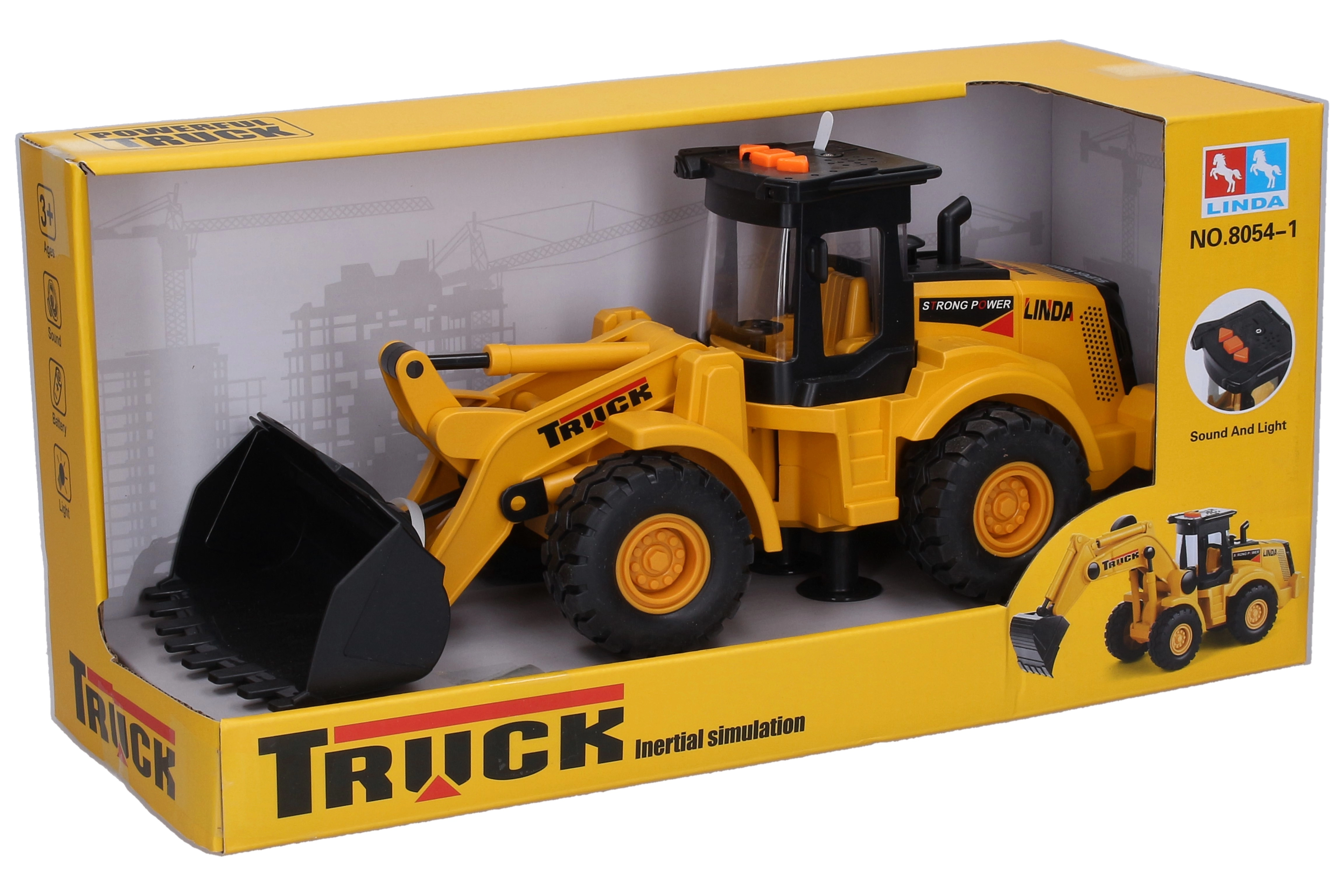 A 35 cm hosszú, tehetetlenségi meghajtású, valósághű markológép örömet szerez a kis építőgépkedvelőknek. Fény- és hangeffektekkel, mozgatható tolólappal és könnyű, tetőn lévő gombos aktiválással rendelkezik. A csomag tartalmaz 3× AG13 elemet.