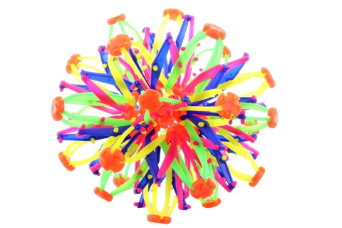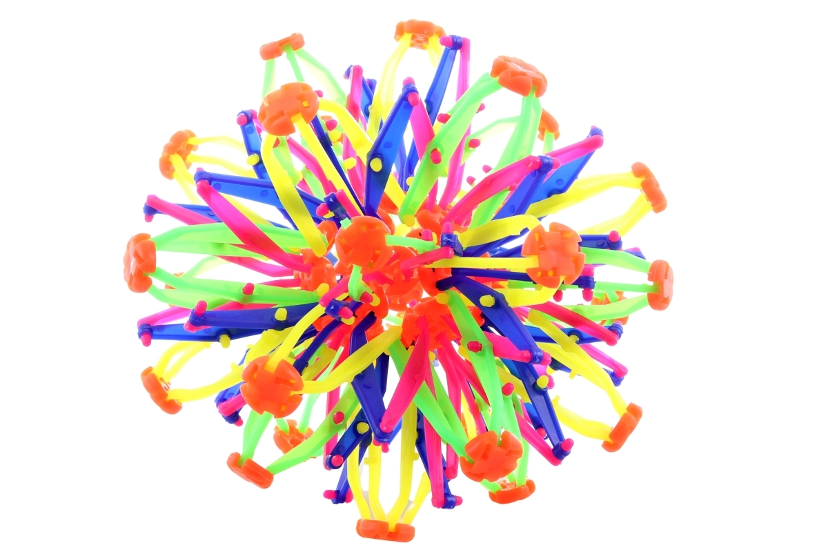 Ez a színes, összehajtható, könnyű műanyag labda a gyerekeket és a felnőtteket egyaránt lenyűgözi. Átgondolt szerkezetének köszönhetően könnyen kinyílik és összehúzódik, így kiváló stresszoldó játék, valamint eszköz a motorika fejlesztésére és a téri észlelés támogatására. A rudak sima végei és a finoman mozgó csuklók biztonságos és élvezetes használatot biztosítanak.