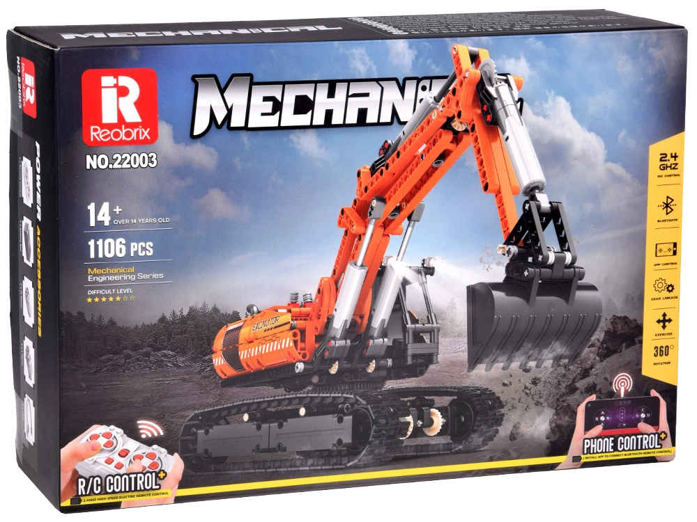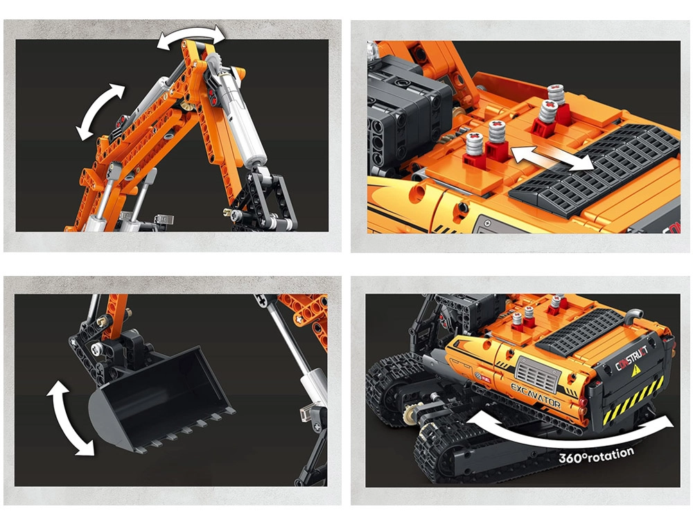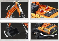 Ez az építőkészlet ötvözi a kreatív építést az építőgépek valósághű funkcióival. Összeállítás után egy masszív lánctalpas kotrógépet kapsz részletes karral, kanállal és 360°-ban forgatható felépítménnyel. A vezérlés intuitív – vagy a 2,4 GHz-es távirányítóval, vagy kényelmesen telefonról a Bluetooth alkalmazással.