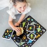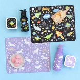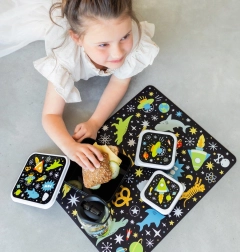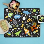 Ez a fekete, űr mintás vinil alátét a gyerekeket és a szülőket egyaránt lenyűgözi. A csúszásgátló rétegnek köszönhetően stabilan a helyén marad az asztalon, tágas formátuma pedig elegendő helyet biztosít tányérnak, evőeszközöknek és kreatív tevékenységeknek. Az anyag nagyon könnyen tisztítható – elég egy nedves ronggyal áttörölni.