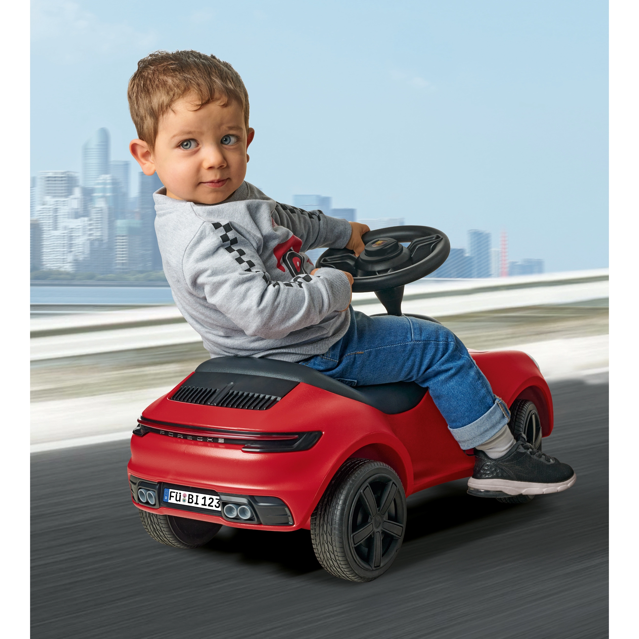 Ideális társ a mindennapi felfedezéshez – az első totyogó lépésektől a magabiztos gurulásokig. Remekül fejleszti a egyensúlyt, koordinációt és erőt, mindezt a sportos Porsche 911 vonzó dizájnjában.