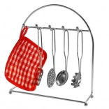 - Serpenyő; 3 különböző méretű lábas; 2 fedő; 2 bögre; állvány konyhai eszközökhöz; textil edényalátét; textil kesztyű; 4 kiskanál; habverő; merőkanál; lapát; szűrő; tésztaszedő kanál; 2 lapos szűrő