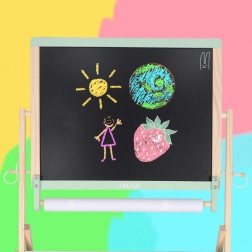 A LULILO Kredo multifunkciós oktató tábla szórakozássá teszi a tanulást. A gyerekek írhatnak krétával, fehér táblafilccel vagy rajzolhatnak a tekercspapírra. A mágneses betűk és számok segítik az ábécé és a számok megismerését, míg a számláló és az mutatós óra fejleszti a logikát és a finommotorikát.