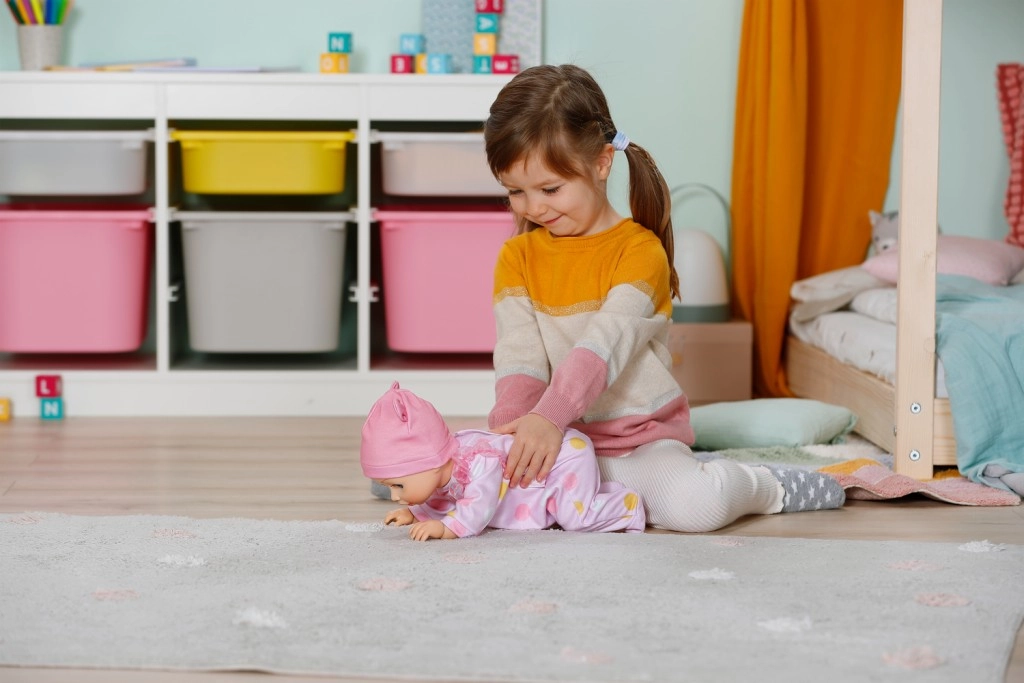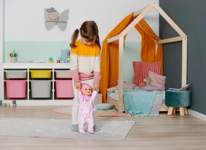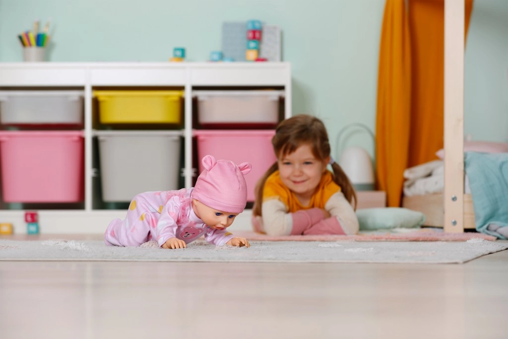 A BABY born Emily baba mozgásra és kreativitásra ösztönzi a gyerekeket – az egyszerű és biztonságos mechanizmus lehetővé teszi, hogy a baba elinduljon vagy a földön kússzon. A gyerekek így utánozhatják a babagondozást, történeteket találhatnak ki, és közben fejleszthetik a finom- és nagymotorikát.