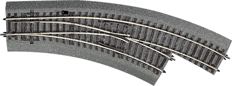 ROCO LINE íves váltó valósághű faaljas megjelenítéssel, zúzottkő ágyazattal H0 méretarányú modellepályához. Két ívet kombinál: R3 (419,6 mm) és R2 (358 mm) 30°-os szögben, jobbra irányban. Masszív és tartós kialakítás, kézi és távvezérelt működtetés váltóállítókkal, valamint kiváló elektromos vezetőképesség cink–ezüst ötvözetnek köszönhetően.