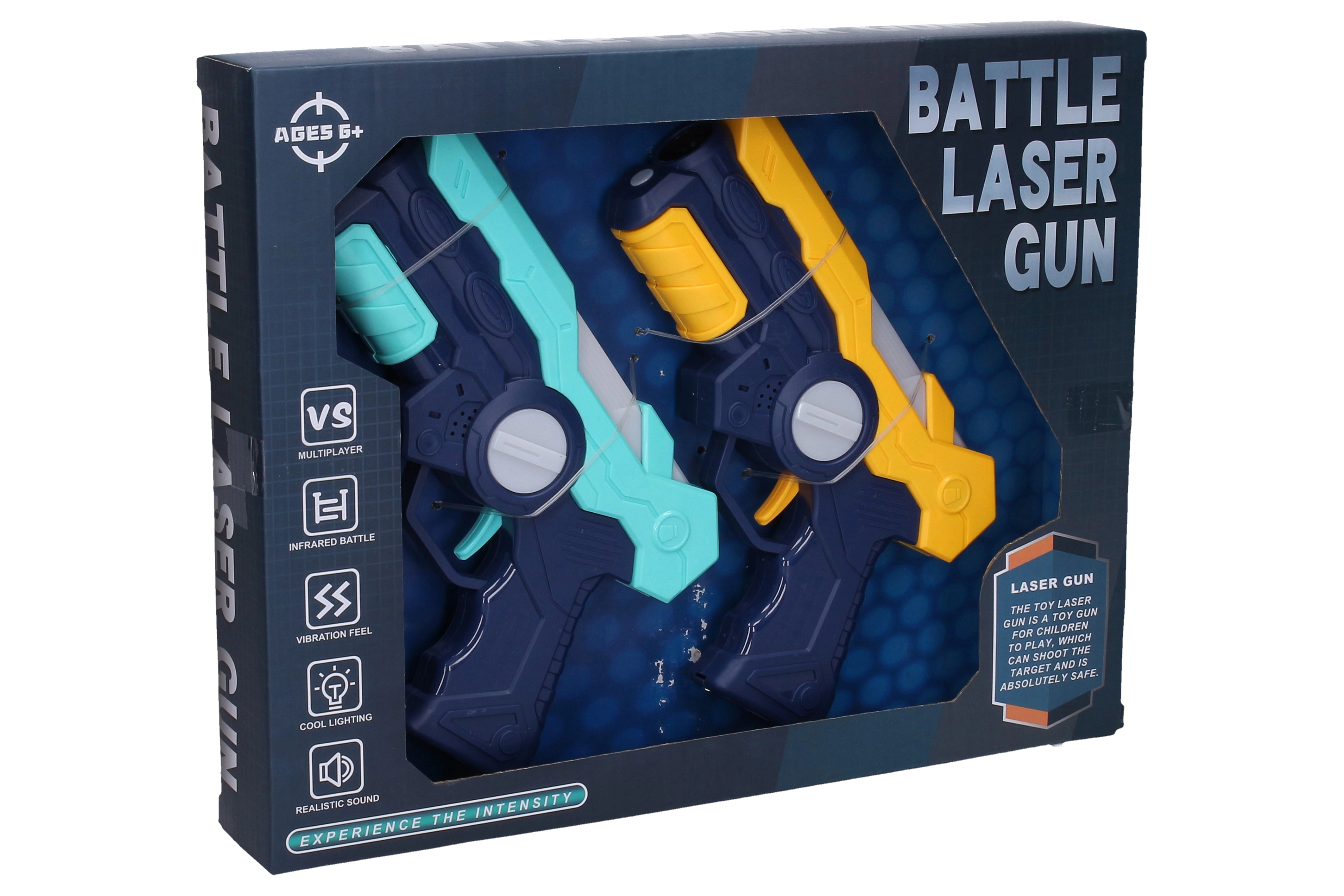 A két lézerpisztolyból álló készlet ideális testvéreknek, barátoknak és családi párbajokhoz. A kompakt, 20 cm-es méret kényelmes fogást biztosít, a látványos fény- és hangeffektek fokozzák a játék intenzitását, a csomagolás hátoldalán található áttekinthető képes útmutató pedig gyorsan végigvezeti a beállításon és a használaton.