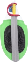 Az 57 cm hosszú kard kényelmesen illik a gyerekek kezébe, a zöld pajzs pedig megbízható „védelmet” nyújt minden párbajban. Remek választás farsangra, jelmezekhez, születésnapi bulikra és szabadtéri játékokra.