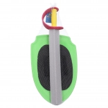 Szórakoztató készlet kis lovagoknak: habkarton kard és pajzs zöld színben, biztonságos párbajokhoz és jelmezes játékokhoz. Könnyű anyag, biztonságos játék és gyerekekhez ideális méret gondoskodik a sok akcióról otthon és a szabadban.