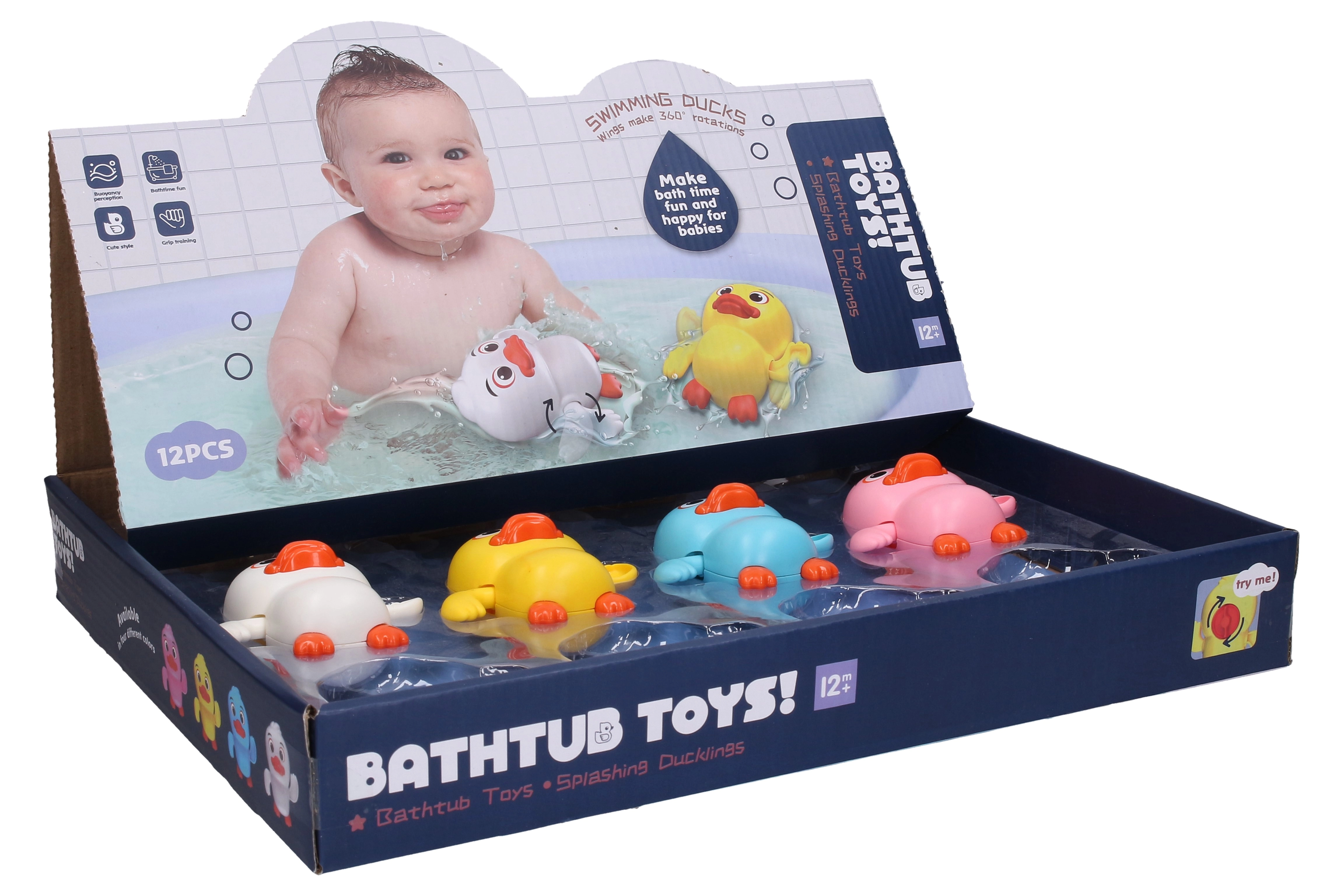 Tedd vidámabbá a fürdést a felhúzható kacsával, amely a mechanizmus elfordítása után a vízen úszik. A kompakt, 9 cm-es méret jól illik a kis kezekbe, és biztonságos, egyszerű, örömteli játékot kínál a kádban vagy a kis medencében.