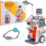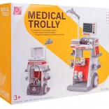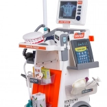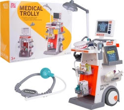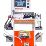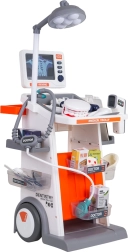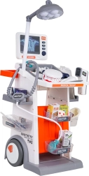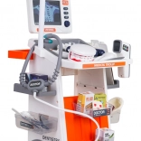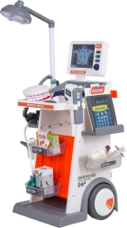 Ez a gazdagon felszerelt szett egyesíti az orvosi, fogászati és szemészeti eszközöket egyetlen mobil kocsiban. A nagy kerekek és a fogantyú megkönnyítik a mozgatást, míg a polcok és tárolók elférnek minden kiegészítőnek. A gyerekek valósághű játékélményt kapnak a fény- és hangeffekteknek köszönhetően – a lámpának, a „röntgen” átvilágításokat mutató panelnek, a világító hőmérőnek és fogászati tükörnek, valamint a sztetoszkóp szívhangjának.