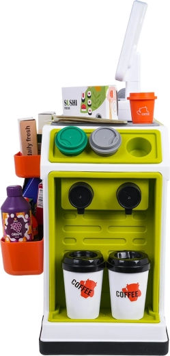 A szett minőségi, tartós műanyagból készült élénk színekben. Nem hiányzik a kávéfőző kapszulákkal és poharakkal, sok „élelmiszeres” csomagolás, valamint praktikus rekeszek az áttekinthető rendszerezéshez. A szkennernek fény- és hangeffektjei vannak, a pénztár a gombok megnyomásakor hangot ad ki, és kártyás fizetésnél is hangot ad.