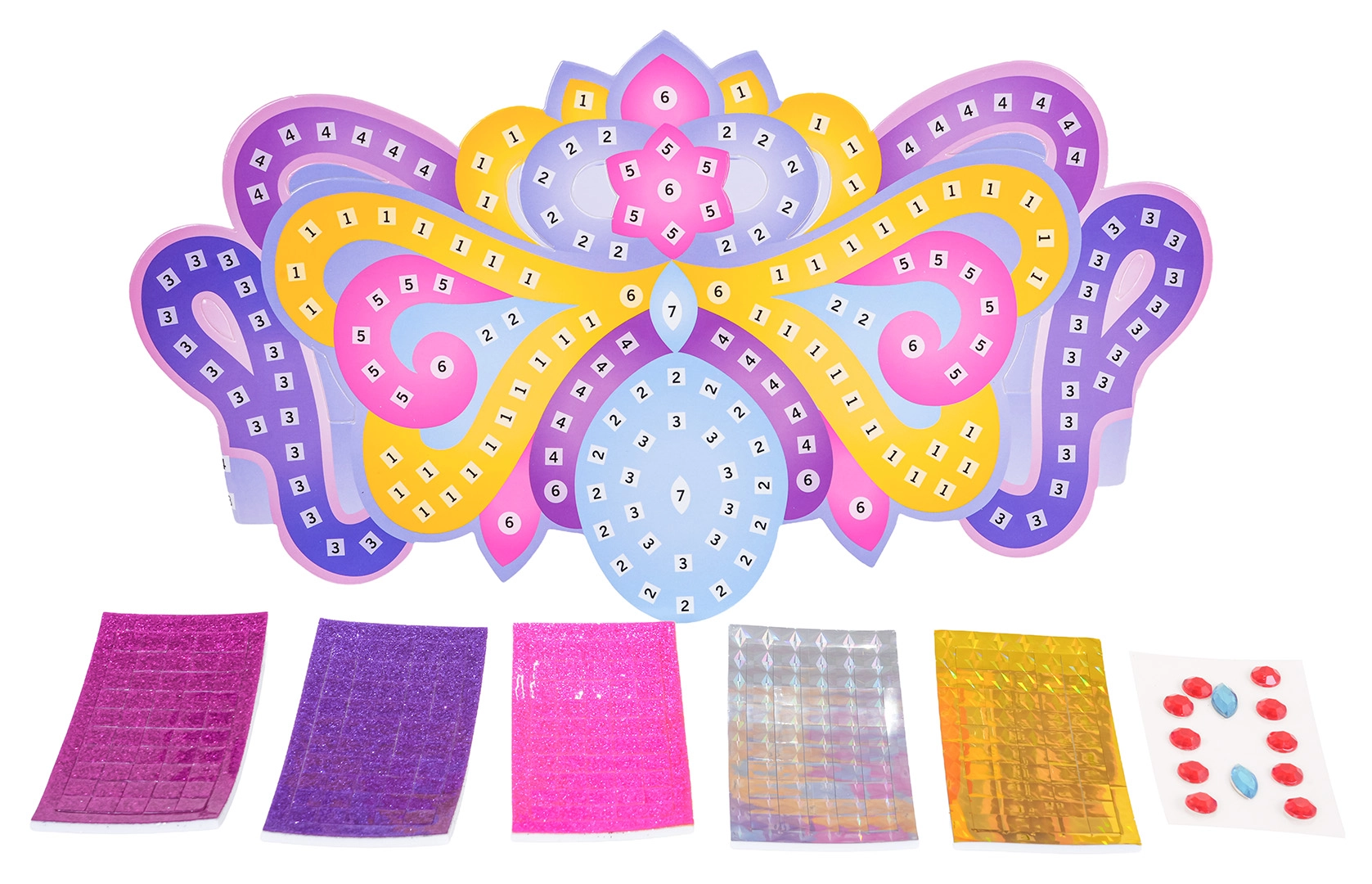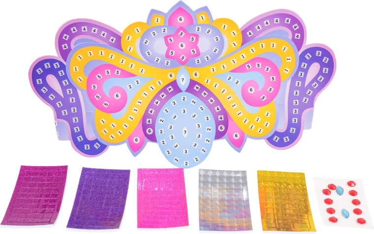 Változtassátok a játékot királyi ünneppé. Ezzel a készlettel a gyerekek egyedi tiarát készítenek saját ízlésük szerint – csak a számok szerint kell felragasztani a matricákat, majd kövecskékkel díszíteni. Ideális ajándék kis hercegnőknek vagy egy kreatív délutánra.