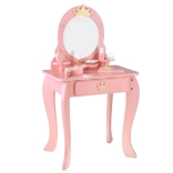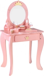 Ez az elegáns, pasztell rózsaszín fésülködőasztal dekoratív koronával első pillantásra magára vonja a figyelmet, és biztonságos, szórakoztató játékot kínál. A nagy ovális tükör, a tágas fiók és a mellékelt tartozékok fejlesztik a fantáziát, a finommotorikát és a szerepjátékot.