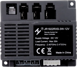 Pót JR1922RXS-3W 12V vezérlőegység a XMX608 gyermek elektromos autóhoz. Megbízható megoldás hibás modul javításához vagy cseréjéhez, biztosítja a zökkenőmentes vezérlést, a motorok és kezelőszervek helyes működését.
