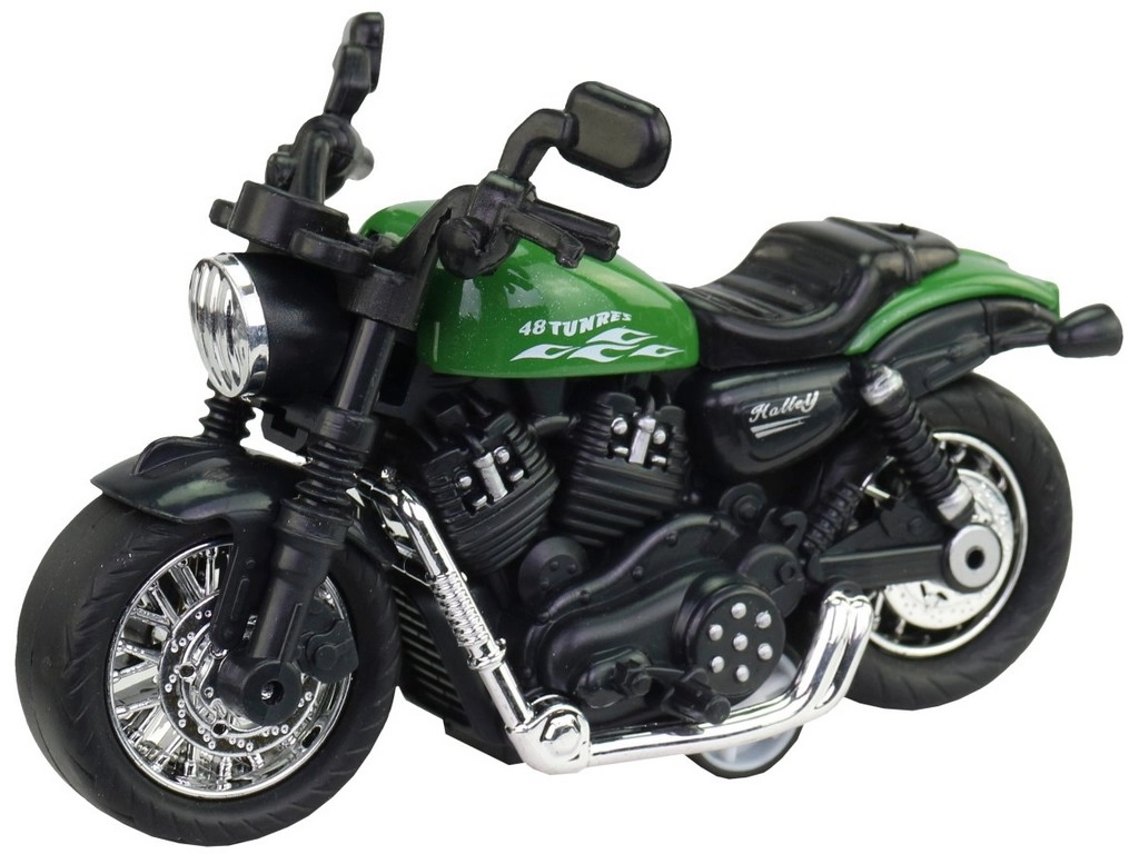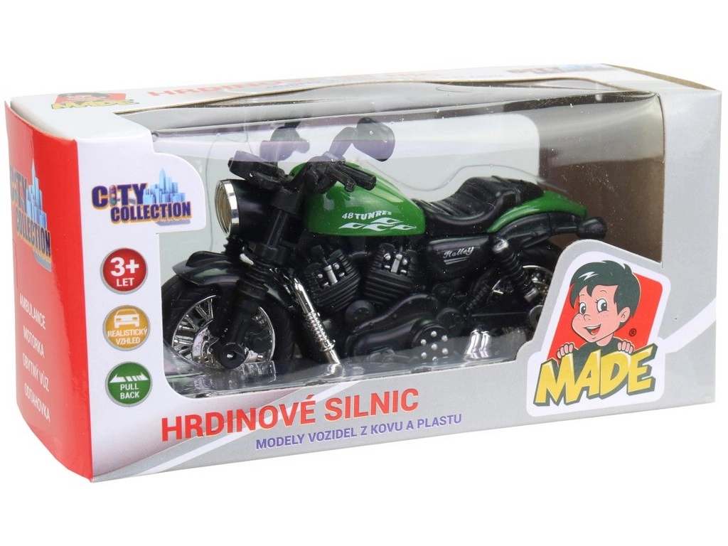 Ez a részletgazdagon kidolgozott fém motor remek választás gyerekjátékhoz és gyűjtői polcra egyaránt. A visszahúzós mechanizmus lehetővé teszi, hogy felhúzd, majd nézd, ahogy előre kilő. A masszív kivitel hosszú élettartamot és biztonságos szórakozást biztosít.