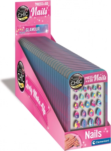 A Crazy Chic – Tipsy Glamour kreatív készlet a CLEMENTONI-tól ideális stílusos és biztonságos manikűr készítéséhez 6 éves kortól. 24 öntapadós műköröm-tippet tartalmaz különböző méretekben, glamour motívumokkal, amelyek ragasztó nélkül könnyen felhelyezhetők, hipoallergének és könnyen eltávolíthatók.