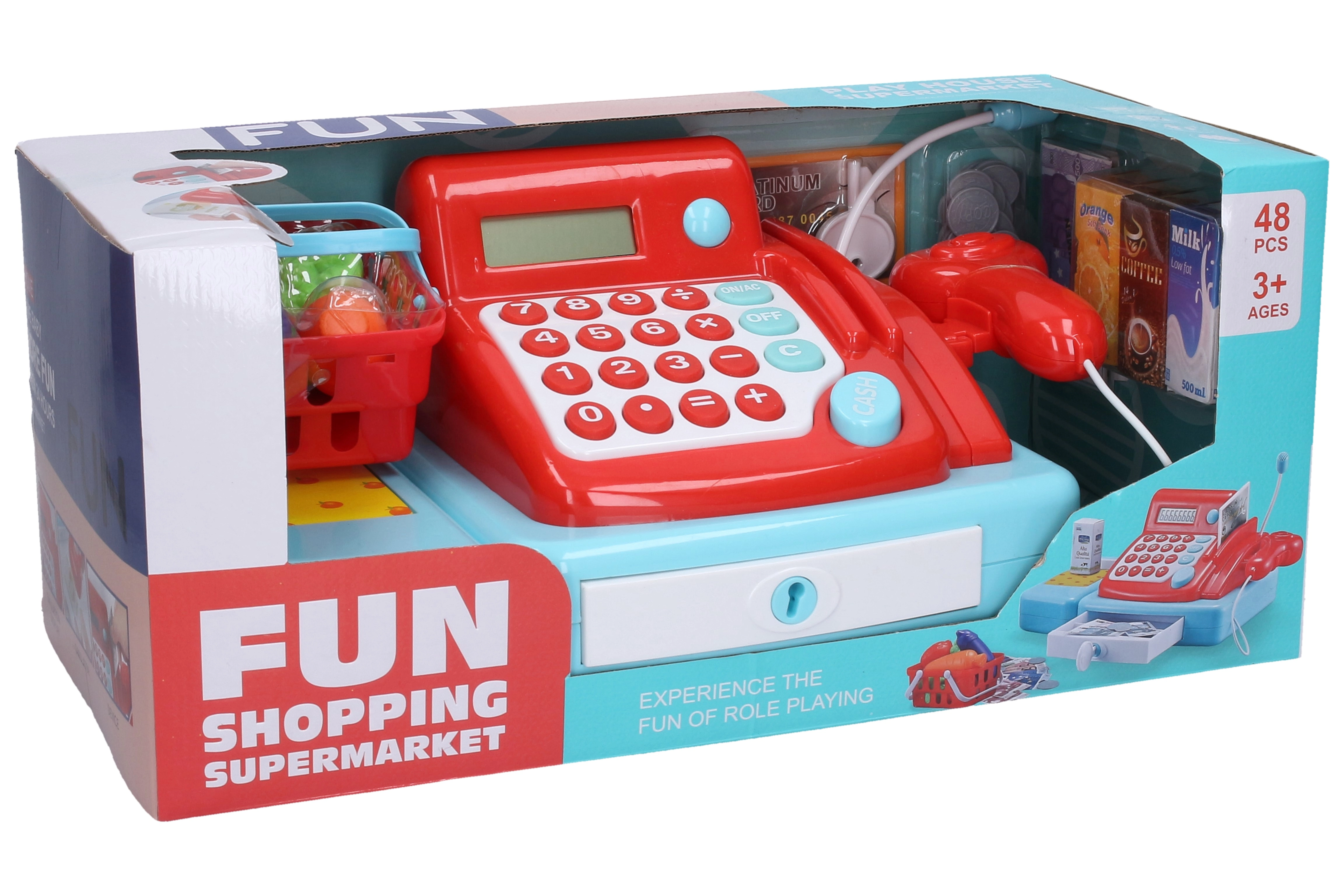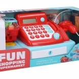 Szórakoztató gyerek pénztárgép kiegészítőkkel, amely élethű boltos játékot kínál. Fény- és hangeffekteket nyújt, élelmiszeres kosárral és papírpénzzel. A kompakt 33 × 19 × 14 cm-es méret ideális a kis kereskedőknek. 2× AA elemmel működik (nem tartozék).