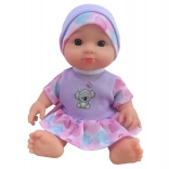 Aranyos kisbaba finom, halványlila ruhában, amely örömet szerez minden gyermeknek. Kompakt, 22 cm-es méretének köszönhetően remekül illik a gyerekkezekbe, útra és a babakocsiba is. Puha kivitel és kedves megjelenés támogatja a gyermeki fantáziát és a gondoskodó szerepjátékokat.