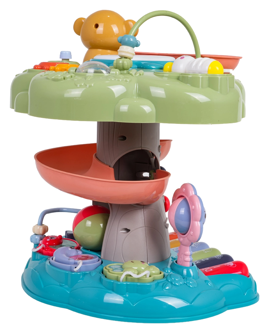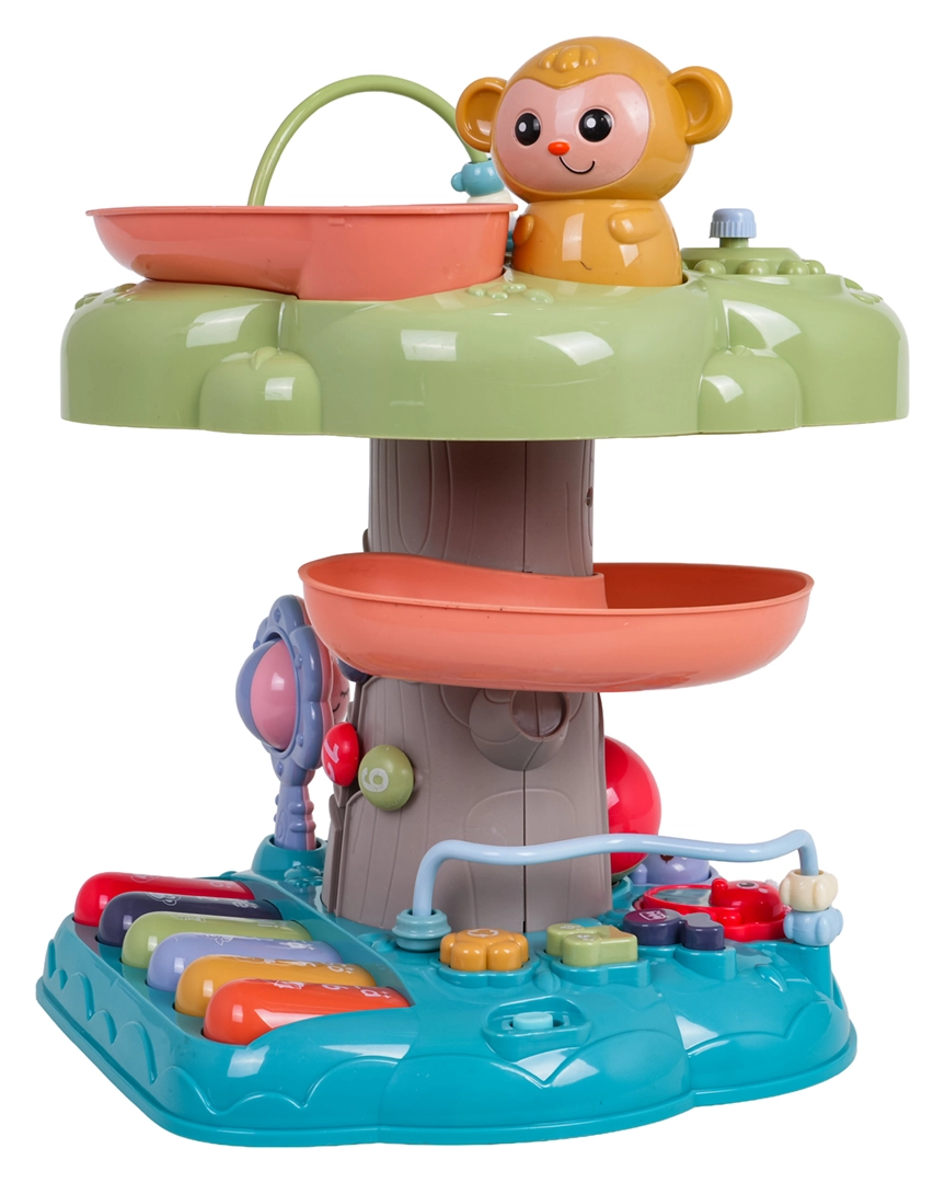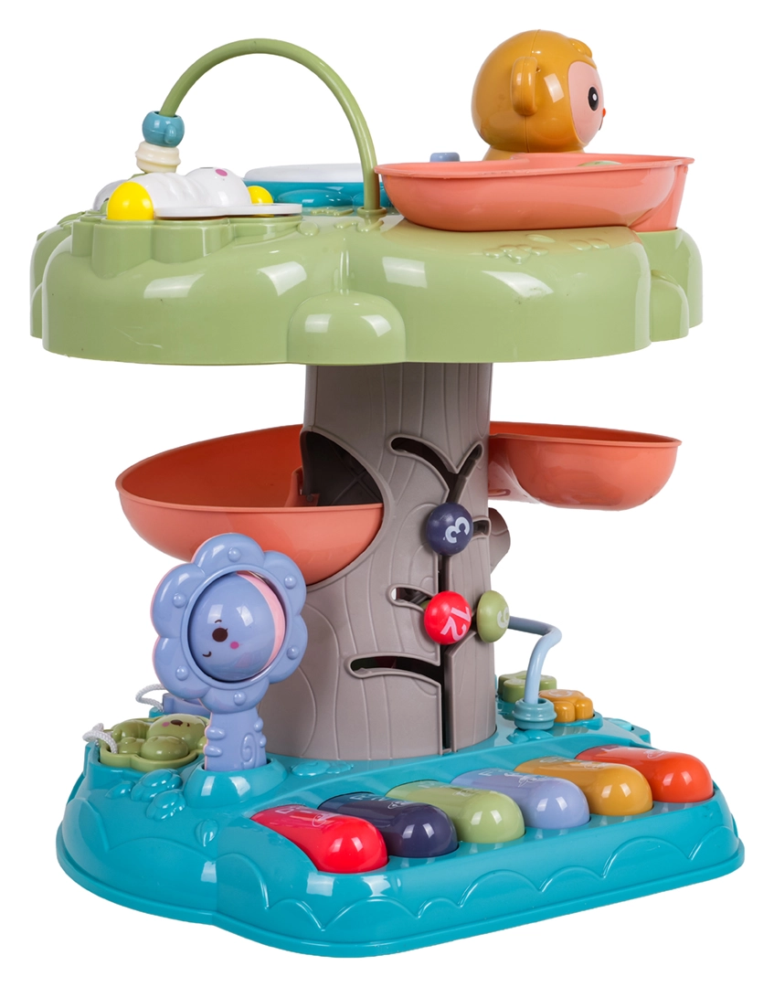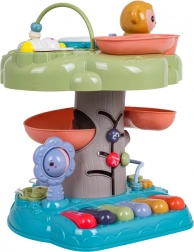 Szórakoztató interaktív fa 18 hónapos kortól, amely fejleszti a finommotorikát, a logikát és az érzékelést. Kínál fény- és hangeffekteket, zongorát több móddal, spirális golyópályát és sok manipulációs elemet (forgatás, tologatás, formabedobás). Minőségi, éles szélek nélküli műanyag, élénk színek és biztonságos kivitel gondoskodik a hosszan tartó vidám játékról.