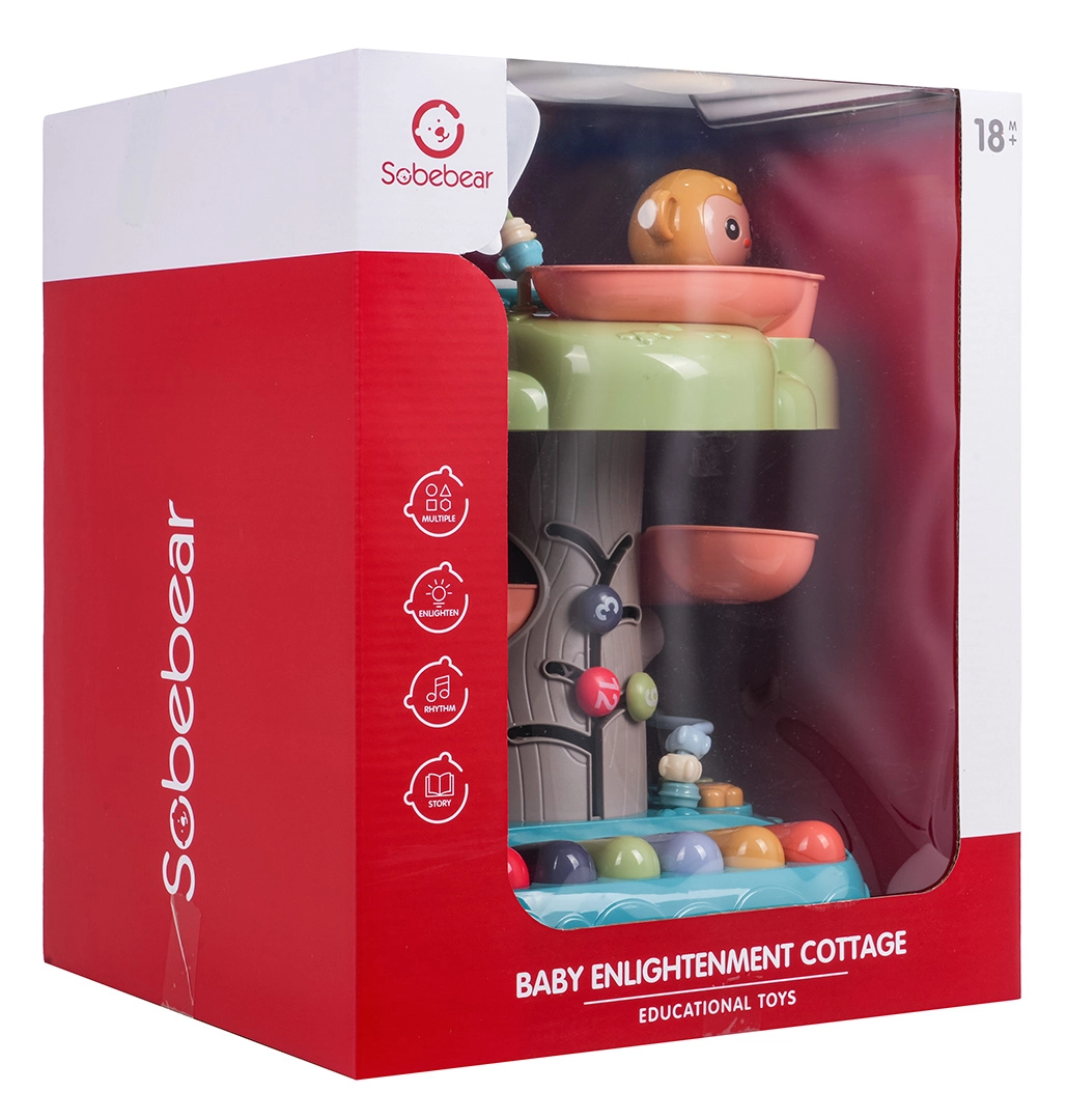 Nem hiányzik a gyöngylabirintus, fogaskerekek, kivehető csörgők és zsinóron lévő állatkák a formapárosításhoz. A gyerekek gombokat nyomhatnak, forgathatnak, mozgathatnak és dobolhatnak – minden akció hangot vagy fényt vált ki. A játék tartós, éles szélek nélküli műanyagból készült, és biztonságos otthoni játékra tervezték.
