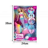 A WOOPIE Gina sellő baba mesés világot hoz a gyerekeknek, tele fényekkel, zenével és fantáziával. A szivárványos, mozgatható farok rózsaszín uszonnyal, a színes top és a hosszú szőke haj hívogat fésülésre, fonásra és formázásra. A beépített fény- és hangeffektek fokozzák a játékélményt, és a szobát víz alatti királysággá varázsolják.