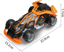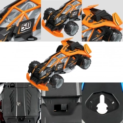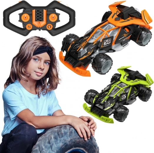 Gyors és szórakoztató WOOPIE RC autó 6 éves kortól, stabil 2,4 GHz-es irányítással, látványos LED világítással és terepabroncsokkal otthoni és kültéri használatra. A két joystickos, intuitív vezérlőnek köszönhetően a gyerekek gyorsan elsajátítják a pontos kormányzást, és élvezhetik a dinamikus versenyeket. A szín véletlenszerűen kerül kiküldésre (narancssárga vagy zöld).