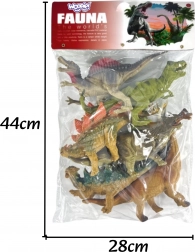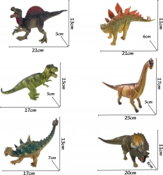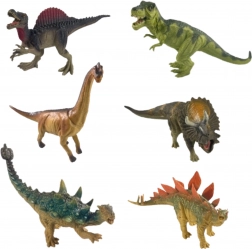 - 6 darabos készlet különböző dinoszauruszfajokkal, köztük a fenséges Tyrannosaurusszal és az impozáns Triceratopsszal.