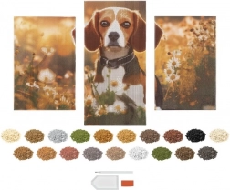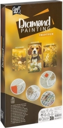 Ez a kreatív gyémántszemes festőkészlet mindent tartalmaz egy látványos, kutyás triptichon elkészítéséhez. Minden vásznon előre nyomtatott minta és ragasztóréteg található, amelybe a mellékelt legenda szerint egyszerűen elhelyezed a köveket. A végeredmény gyönyörűen csillog, és remekül mutat a nappaliban, hálószobában vagy a gyerekszobában.