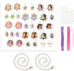 A csomag tartalma: karkötőkhöz való láncok, hab medálok DISNEY PRINCESS motívumokkal, díszítő kiegészítők.