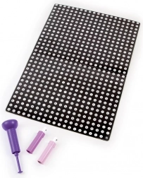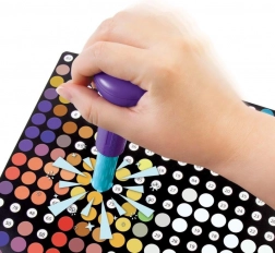 Minden azonnal használatra kész a doboz felnyitása után – ergonomikus bélyegző a kényelmes tartáshoz, pontos jelölések a hibátlan tájékozódáshoz és több mint 600 pötty a hosszan tartó szórakozáshoz. Ideális a finommotorika, a koncentráció és a türelem fejlesztéséhez, és tökéletes választás a nyugodt, pihentető kreativitáshoz is.