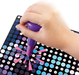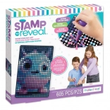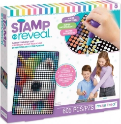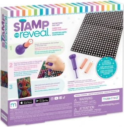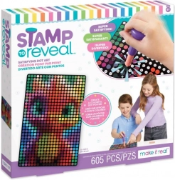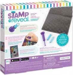 A Stamp to Reveal készlet könnyű és egyben addiktív módot kínál látványos pöttyös képek alkotására. Csak illeszd a bélyegzőt a pöttyös kazettán lévő számhoz, keresd meg a plakáton az egyező számot, igazítsd a köröket és bélyegezz. Minden lenyomattal egyre jobban kirajzolódik a motívum, a végeredmény pedig egy színes plakát ragyogó sárkánnyal, amely készen áll a kiállításra.