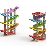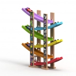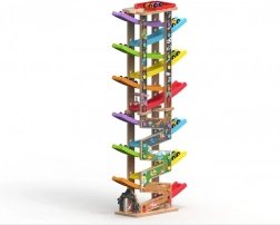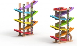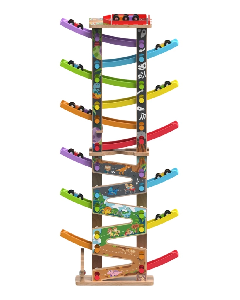 Ez a nagy fa versenypálya még több sebességet és szórakozást visz a gyerekszobába. A hat színes rámpának köszönhetően a gyerekek folyamatos autózást figyelhetnek meg, miközben felfedezik a gravitáció és az ok–okozat elvét. A pálya teljesen önállóan is használható, de csatlakoztatható a meglévő pályához bővítésként az extra hosszú és dinamikus futamokért.