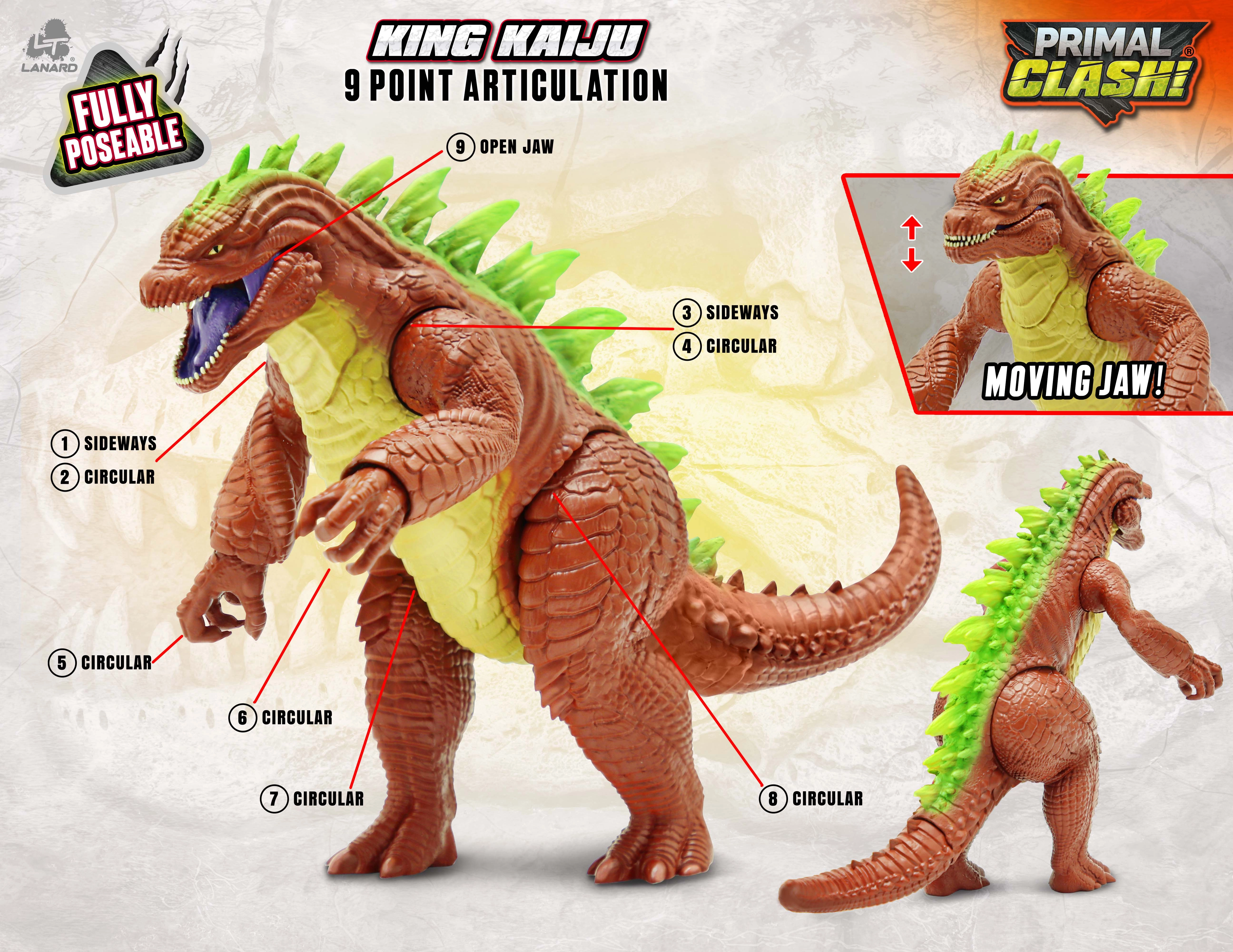 Lépjen be az óriásszörnyek világába a Primal Clash sorozat King Kaiju figurájával. Ez a részletgazdag játék/dekoráció 43 cm magas, figyelemfelkeltő dizájnnal, stabil kivitelben és könnyű összeszereléssel – a farkat egyszerűen csak fel kell pattintani.