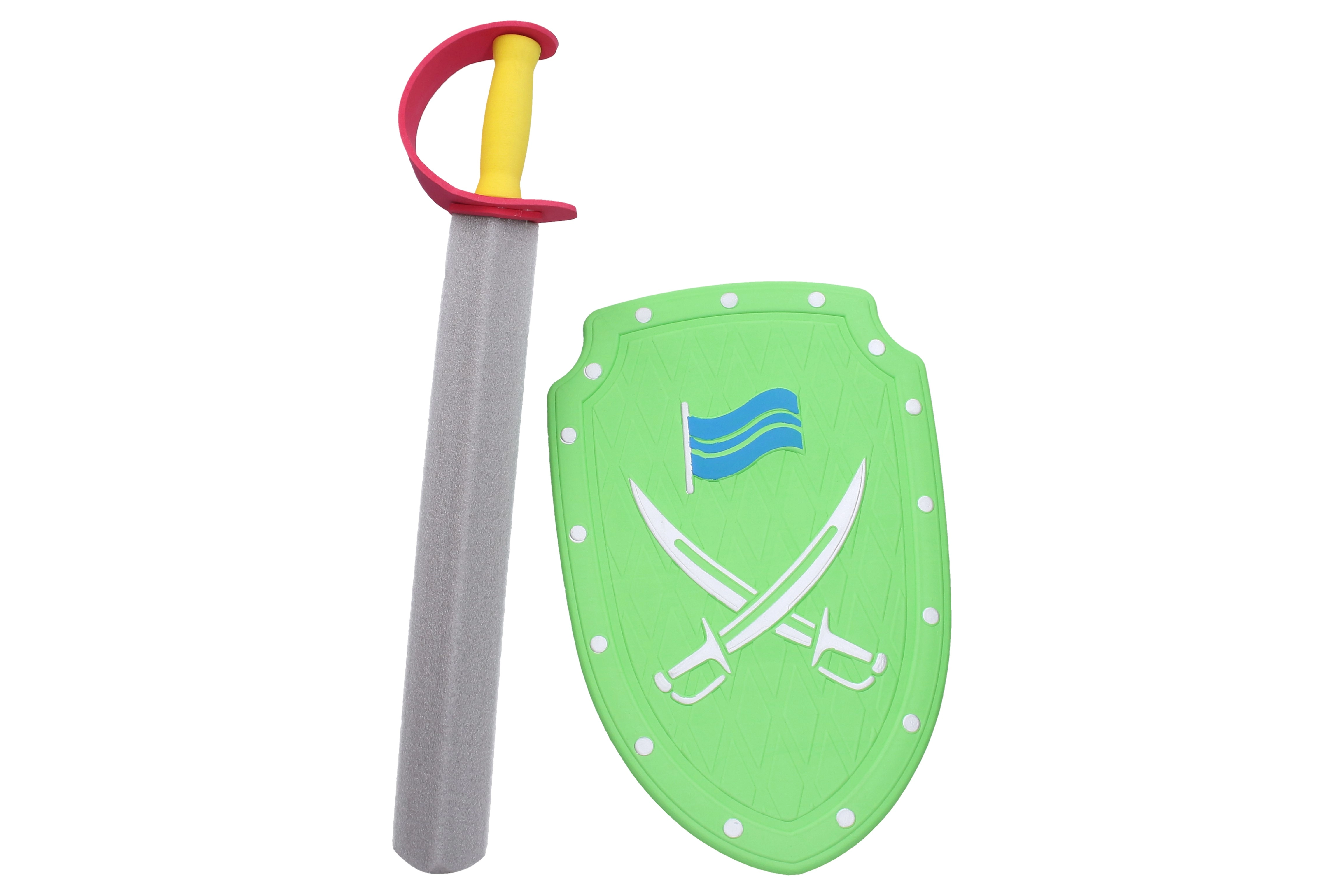 A 57 cm hosszú kard elég nagy az izgalmas összecsapásokhoz, ugyanakkor könnyű és könnyen kezelhető. A 27,5 × 41,5 cm méretű pajzs segít a gyerekeknek gyakorolni a mozgáskoordinációt és a gyorsaságot.