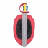 Szórakoztató készlet kis lovagoknak: habszivacs kard és vörös pajzs biztonságos párbajokhoz és kreatív játékhoz. Könnyű, puha és biztonságos anyag ideális gyerekeknek, a 57 cm hosszú kard és a 27,5 × 41,5 cm méretű pajzs kényelmes fogást biztosít és fejleszti a gyermeki fantáziát.