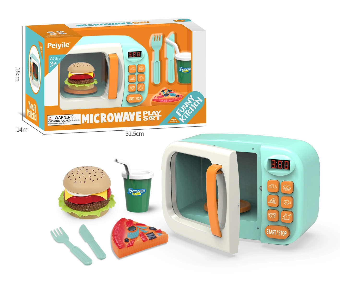 Fedezd fel a játékos konyhai szórakozást ezzel a gyerek mikróval, amely egy valódi készüléket utánoz. A fény- és hangeffekteknek köszönhetően a játék még élethűbb, és támogatja a kreativitást, a fantáziát és a finommotorika fejlődését.