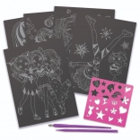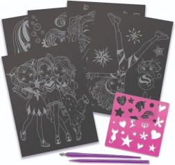 A NEBULOUS STARS kaparós szett ideális a kreativitás, a finommotorika és a türelem fejlesztésére. A gyerekek a mellékelt eszközökkel felfedik a színes motívumokat, és egyedi képeket készítenek sablonok alapján vagy saját fantáziájuk szerint. Isadora története varázslatos hangulatot kölcsönöz az alkotásnak.