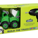 Szórakoztató építőjáték kis technikusoknak: csavarozható kukásautó 17 cm hosszban elektromos csavarhúzóval és kézi szerszámmal. A gyerekek maguk szedik szét és rakják össze a járművet, így fejlesztik a finommotorikát, a logikus gondolkodást és a türelmet. Az elektromos csavarhúzó 2× AA elemmel működik (nem tartozék).