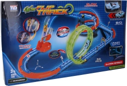 Szórakoztató pálya világító kisautóval, amely akciódús vezetési élményt és látványos fényhatásokat kínál a gyerekeknek. Az összeszerelt pálya mérete 88 × 27 × 48 cm, a kisautóban pedig beépített 3,7 V / 90 mAh lítium akkumulátor található USB töltéssel. A vezérlés egyszerű a BE/KI kapcsolónak és a jármű alsó részén lévő töltőportnak köszönhetően.
