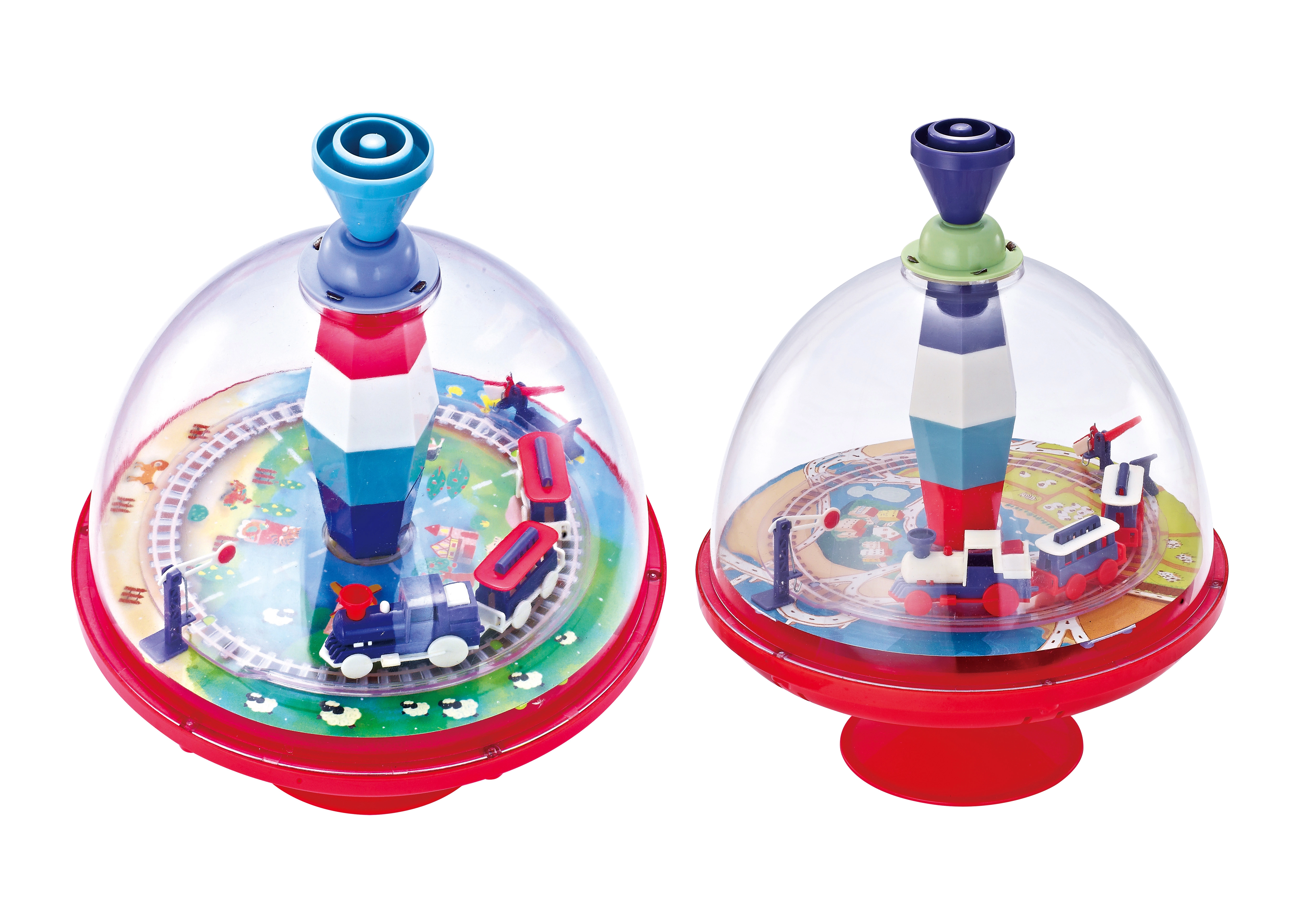 A szórakoztató, vonat formájú pörgettyű örömet okoz a gyerekeknek forgásával és látványos megjelenésével. Látványos effektekkel, egyszerű kezeléssel és strapabíró kivitellel biztosítja a biztonságos játékot. 2 változatban elérhető, otthoni és utazási szórakozáshoz egyaránt alkalmas.