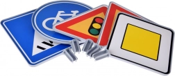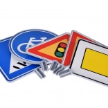 - 5 db közlekedési tábla figura (jelzőlámpa, gyalogátkelő, főútvonal, körforgalom, kerékpárút)