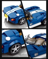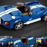 A kék sportautó időtlen roadster stílusban a klasszikusok és a műszaki építőkészletek kedvelőinek egyaránt örömet okoz. Az alacsony, elnyújtott karosszéria lekerekített orral, a nyitott kabin és a markáns sárvédők hiteles megjelenést adnak a modellnek. A 312 elemmel látványos és stabil modellt építhetsz, amely a polcon és a gyűjteményben is kitűnik.