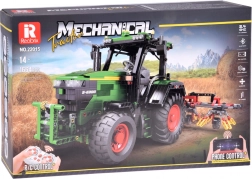Ez a technikai építőkészlet örömet szerez a gépek, a mechanika és a modellek rajongóinak. A zöld fülke, a markáns mintázatú, masszív gumik és a vontatott borona hűen idézik a modern mezőgazdasági traktort. A távirányításnak és a motoroknak köszönhetően simulékony vezetést és interaktív irányítást élvezhetsz.