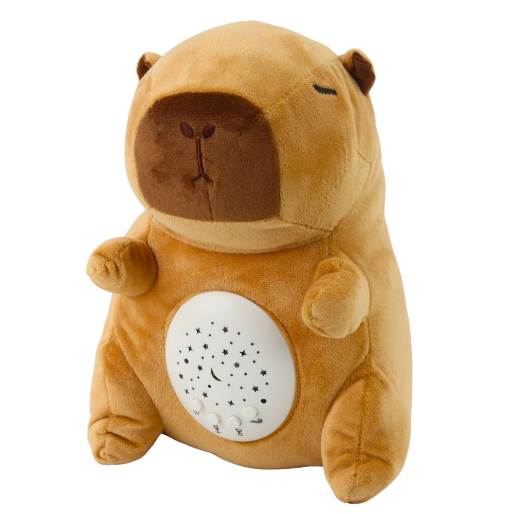 A plüss kapibara mesés csillag- és holdvetítést hoz létre a falakon és a mennyezeten, amelynek fényerejét könnyedén beállíthatja három fokozatban – a finom, tompított fénytől az erősebb ragyogásig. Az integrált modul 8 megnyugtató dallamot és természet-hangokat játszik le, amelyek támogatják a relaxációt és a gyorsabb elalvást.