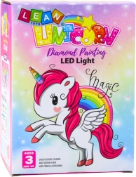 - LED lámpa távirányítóval, unikornis figura, gyémánt matricák, díszítő kellékek, használati útmutató