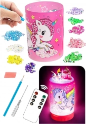 Varázslatos éjszakai LED lámpa unikornis motívummal, amely egyesíti a lágy, színes megvilágítást és a kreatív szórakozást. A távirányítóval könnyedén válthatod a fényüzemmódokat, míg a gyémánt matricák lehetővé teszik, hogy a gyerekek egyedien feldíszítsék a lámpát. Meghitt hangulatot teremt az elalváshoz, miközben fejleszti a finommotorikát és a kreativitást.