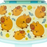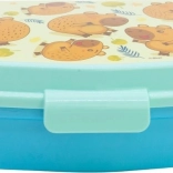 Stílusos és praktikus uzsonnás doboz gyerekeknek iskolába, játszótérre és kirándulásokra. Tartós anyagból készült, a tetőn vonzó kapibara motívummal, és BPA-mentes. Remekül védi az ételt a sérüléstől, a apróságokat pedig az elvesztéstől.