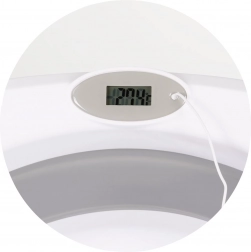 Az integrált hőmérő segít beállítani az ideális vízhőmérsékletet. A leeresztő nyílás praktikus dugóval gyors ürítést tesz lehetővé a kád megemelése nélkül.