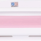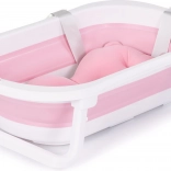 Ez a helytakarékos, Malibu Pink színű babakád újszülöttek és nagyobb gyerekek számára is készült. A beépített hőmérőnek köszönhetően egyszerűen felügyelheti az ideális vízhőmérsékletet, míg a puha fürdető betét extra megtámasztást és kényelmet nyújt a babának. A stabil fém állvány kényelmes magasságba emeli a kádat, kíméli a hátat, és fürdetés után könnyen összecsukható.